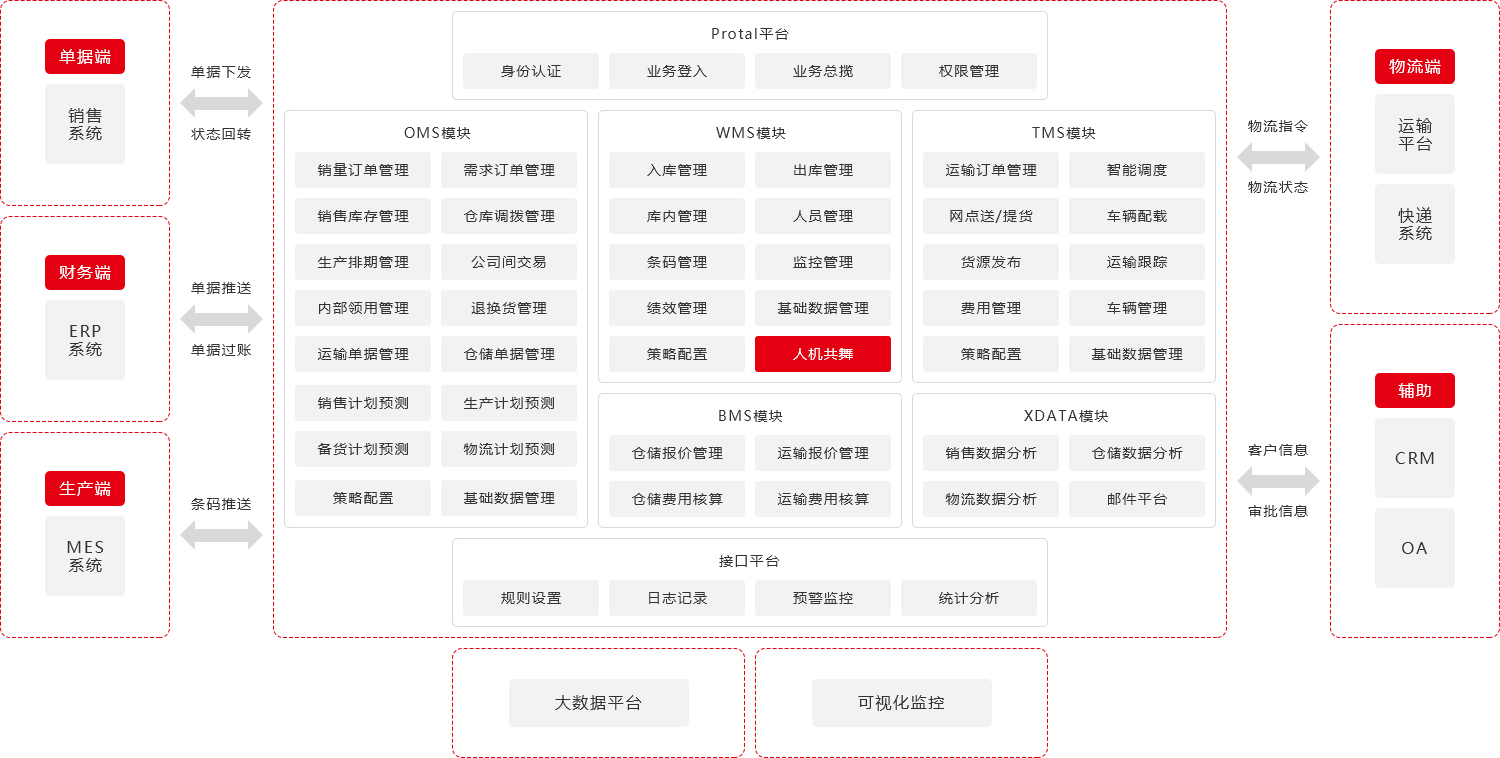 訂單管理(OMS)、倉儲(chǔ)管理(WMS)、運(yùn)配管理(TMS)、核算管理(BMS)