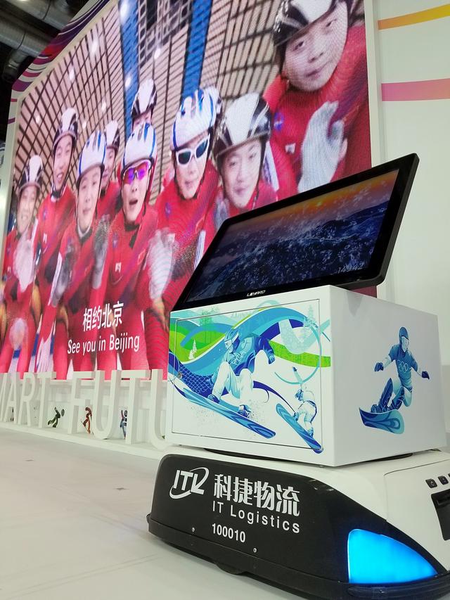 當憨態(tài)可掬的熊貓隨著音樂滑動,當時空轉(zhuǎn)換,科捷物流的倉儲機器人在現(xiàn)場模擬冰屏的舞動,“相約北京”的聲音傳遍展區(qū),參觀者真實感受到了科技的魅力。