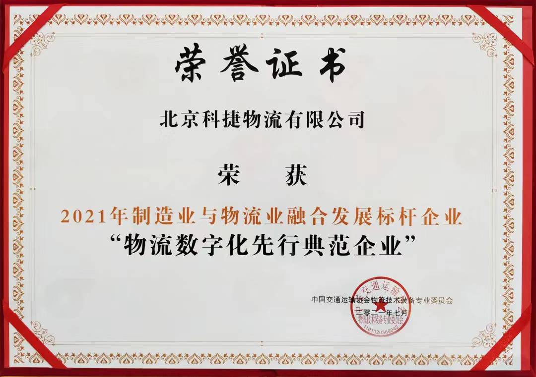 神州控股旗下科捷榮獲“物流數(shù)字化先行典范企業(yè)”